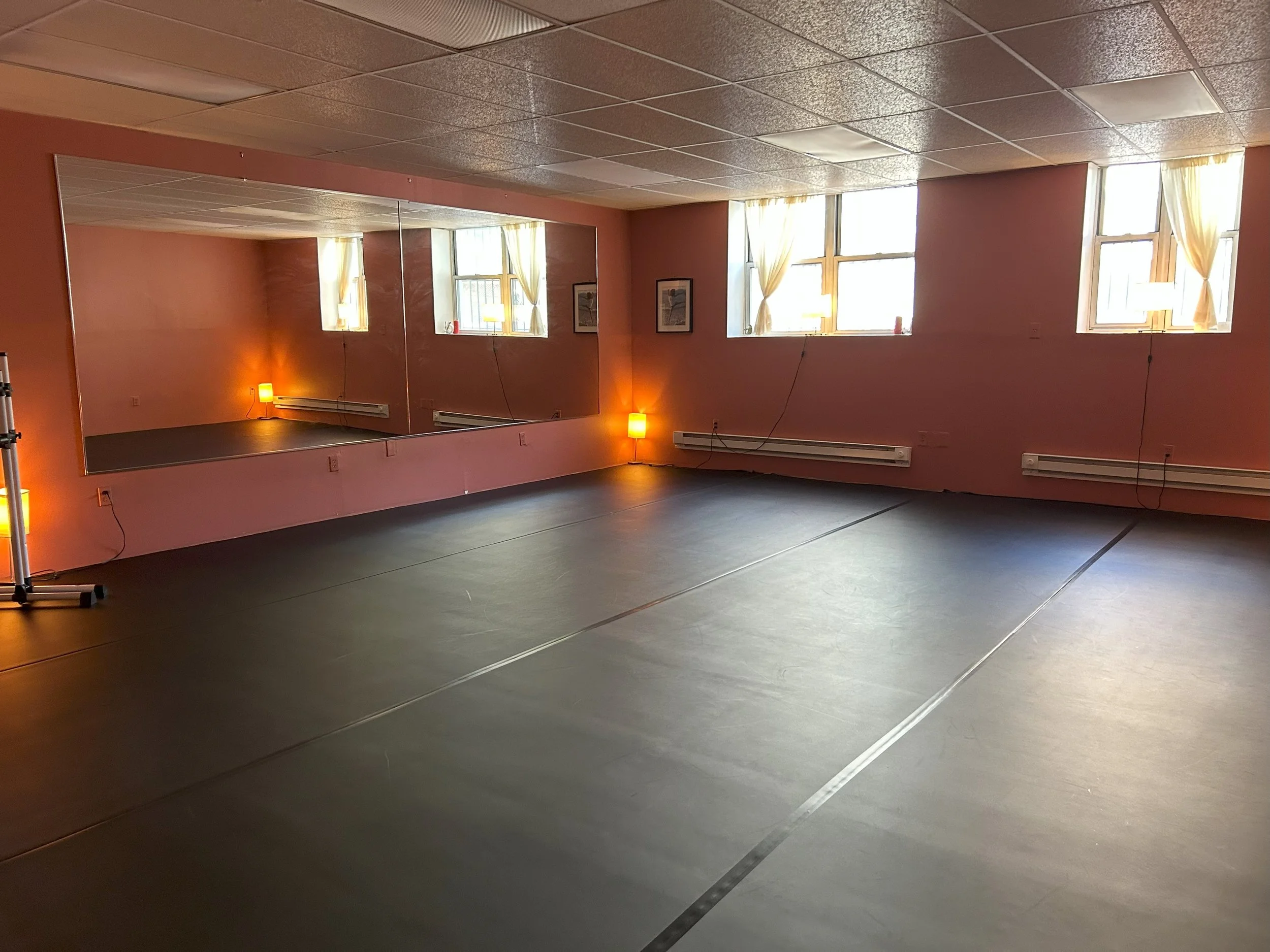 Amenities: Dance Mirrors, Marley Floor, Wi-Fi, Bluetooth Speaker, Ballet Barres.